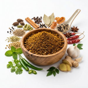 • This is a traditional aromatic spice blend that serves as a cornerstone in many Indian dishes. It is a warming mix of ground spices typically added toward the end of cooking to preserve its complex fragrance.
